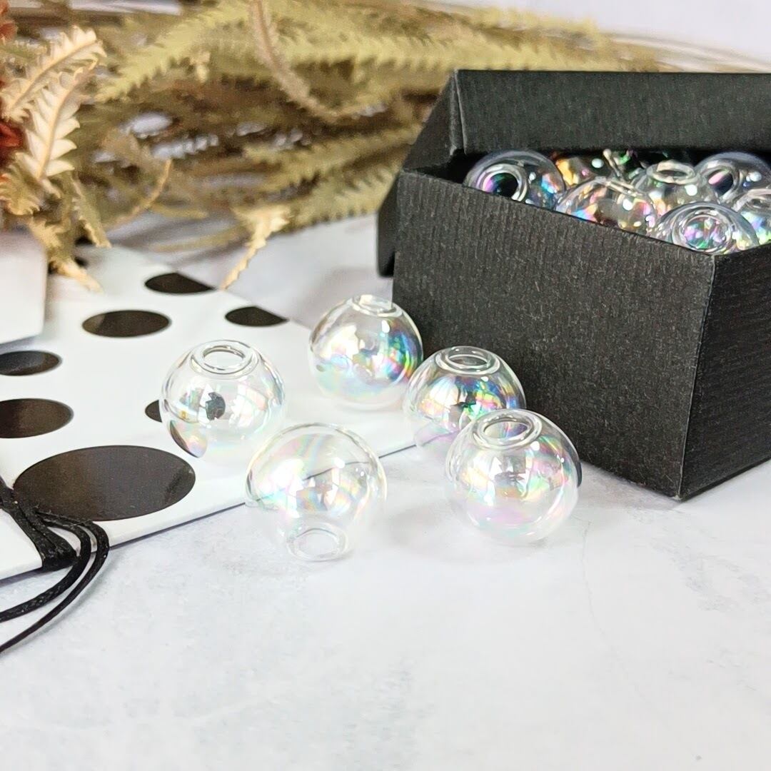 【8個】【14mm】【オーロラクリア】小ぶり 片穴 ガラスドーム ガラスボール チャーム レジン クリア アクセサリーパーツ ハンドメイド DIY