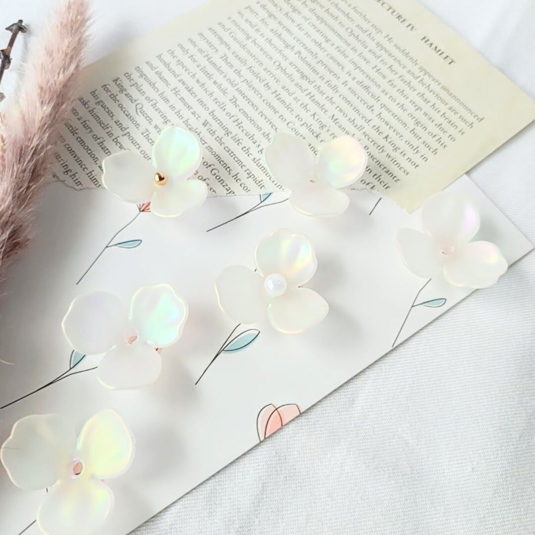 【8個】フロスト オーロラ 艶消し 3弁 フラワー アクリル ビーズ 大ぶり センターホール アクセサリーパーツ