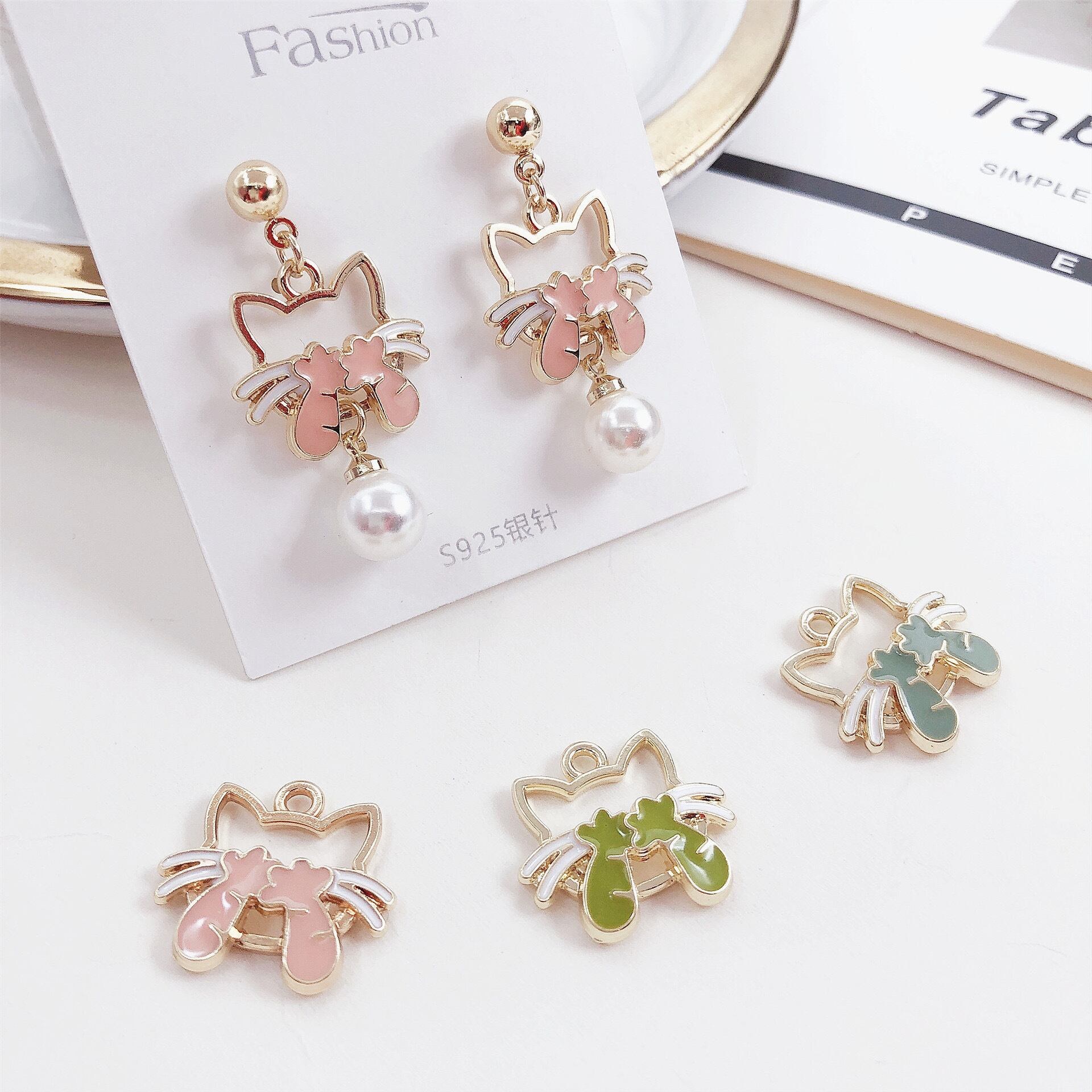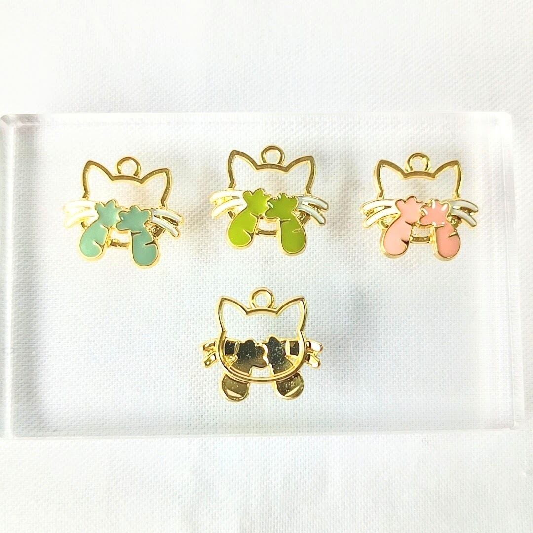 【4個】ねこちゃん チャーム カン付き フレームパーツ アニマル メタルチャーム デコパーツ アクセサリーパーツ