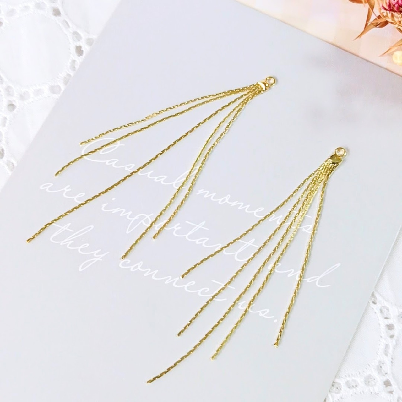 【4個】5連 チェーンタッセル 蛇腹チェーン ロング チャーム ゆらゆら アクセサリーパーツ ハンドメイド MP058
