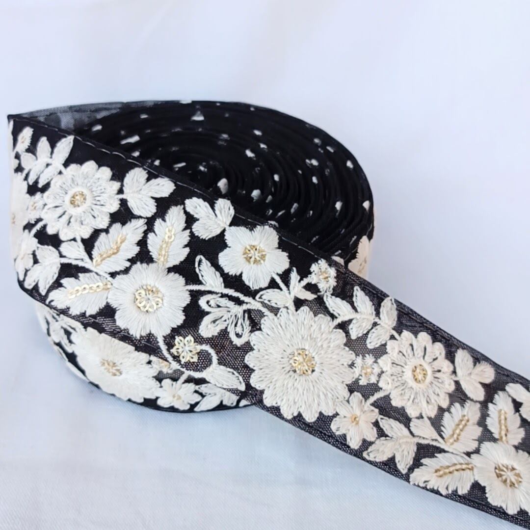 【50cm】【55mm幅】 インド刺繍リボン ホワイト刺繍 フラワー ハンドメイド 手芸 R037