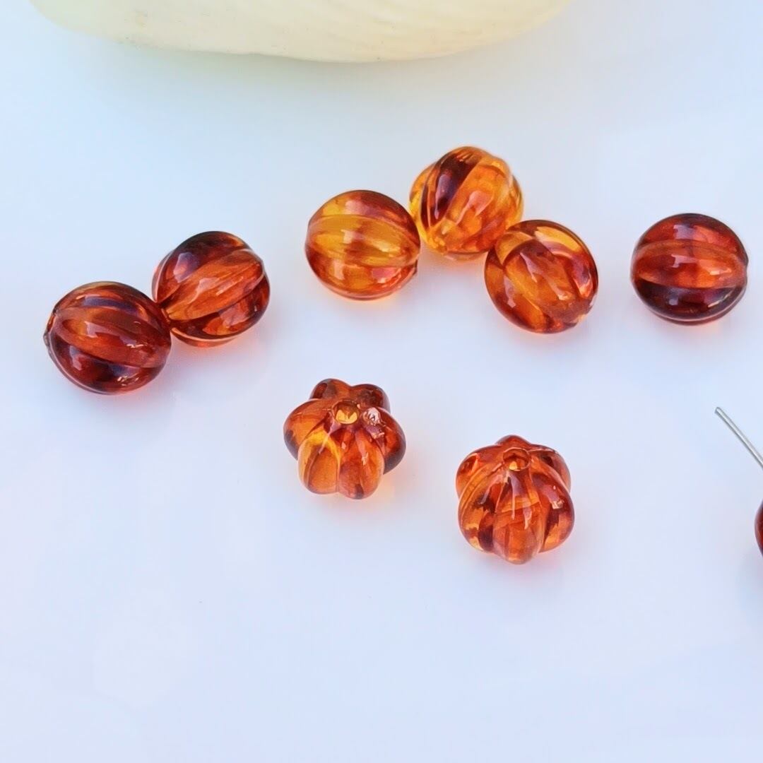 暖かみがあるべっ甲カラーのカボチャビーズです。