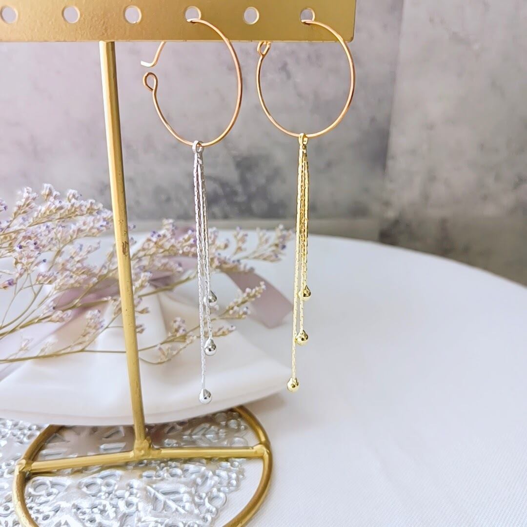 【4個】メタルボール付き 蛇腹チェーンスネークチェーン 3連 チェーンチャーム カン付き ゆらゆら アクセサリーパーツ MP042