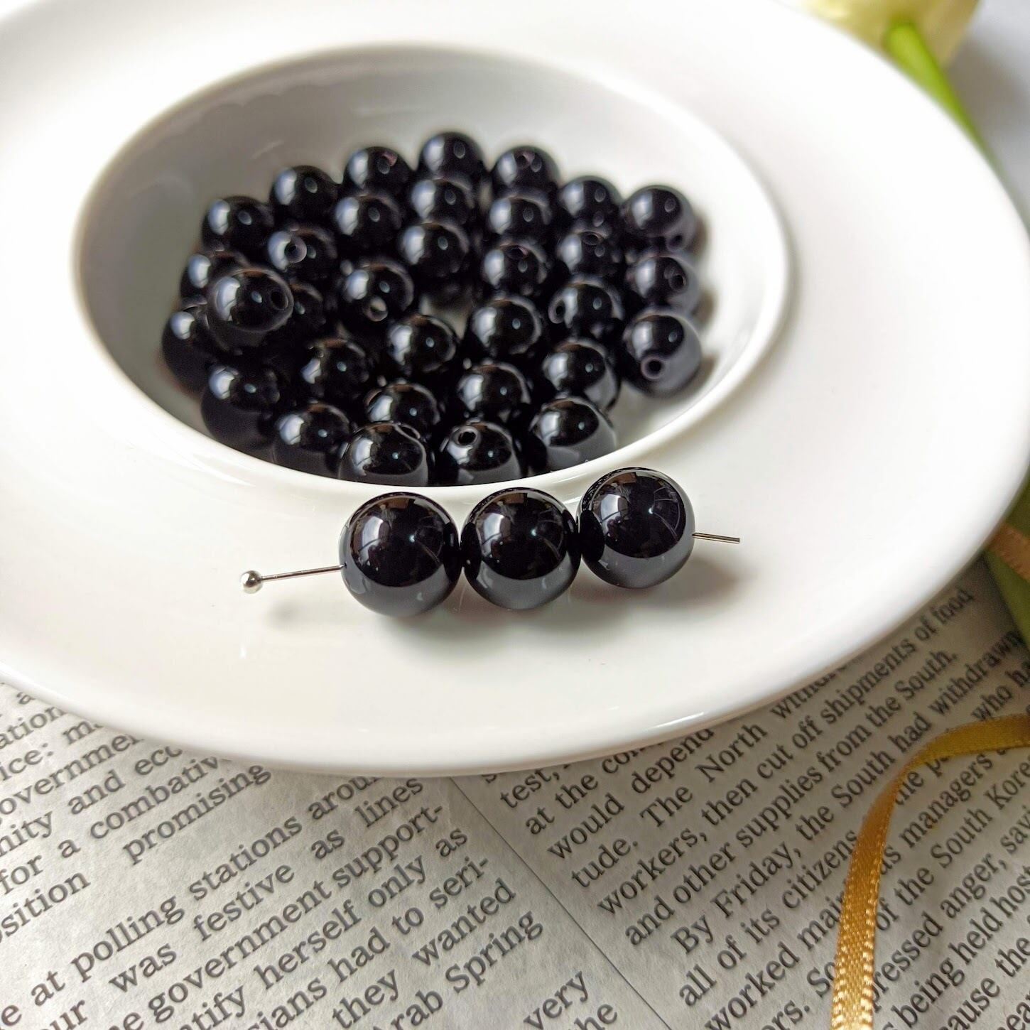 【100個】【8mm】ブラック 丸玉 黒 貫通穴 ラウンド アクリルビーズ 黒玉 アクセサリーパーツ ハンドメイド AB018-4