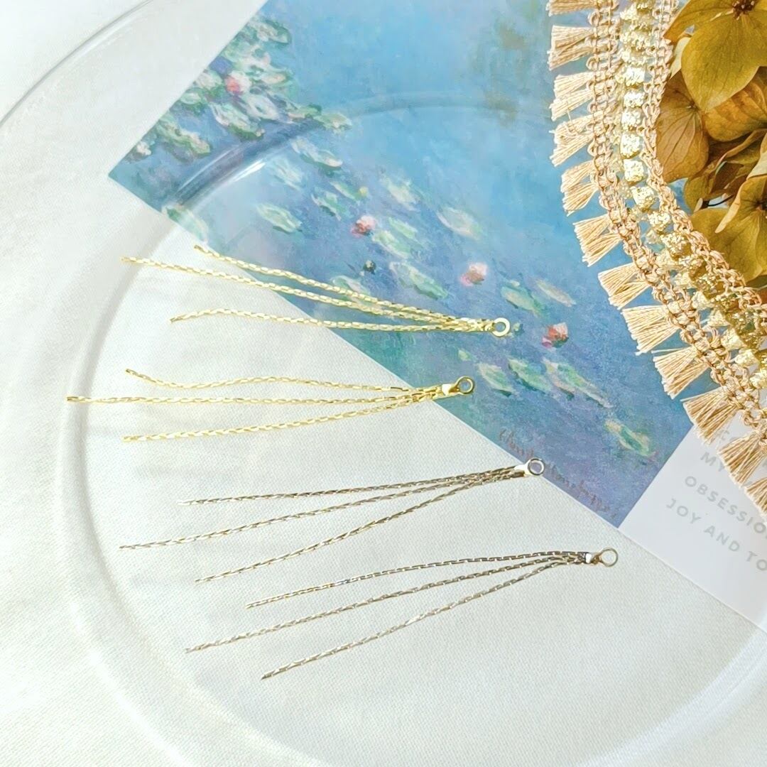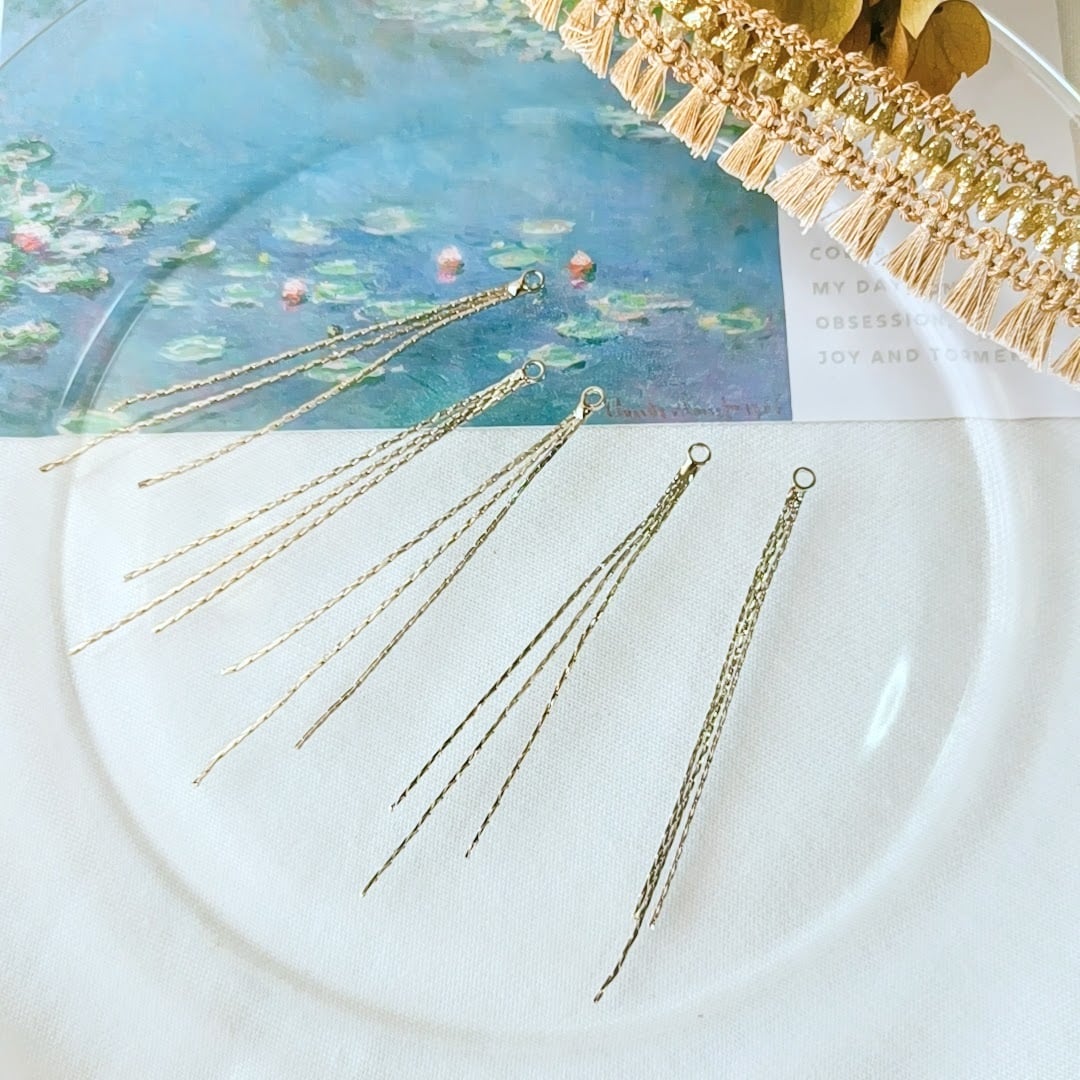 【4個】3連 チェーンタッセル 蛇腹チェーン ロング チャーム ゆらゆら アクセサリーパーツ ハンドメイド MP024