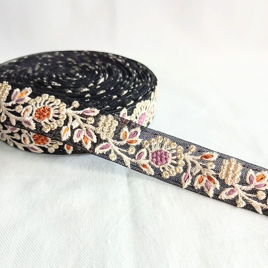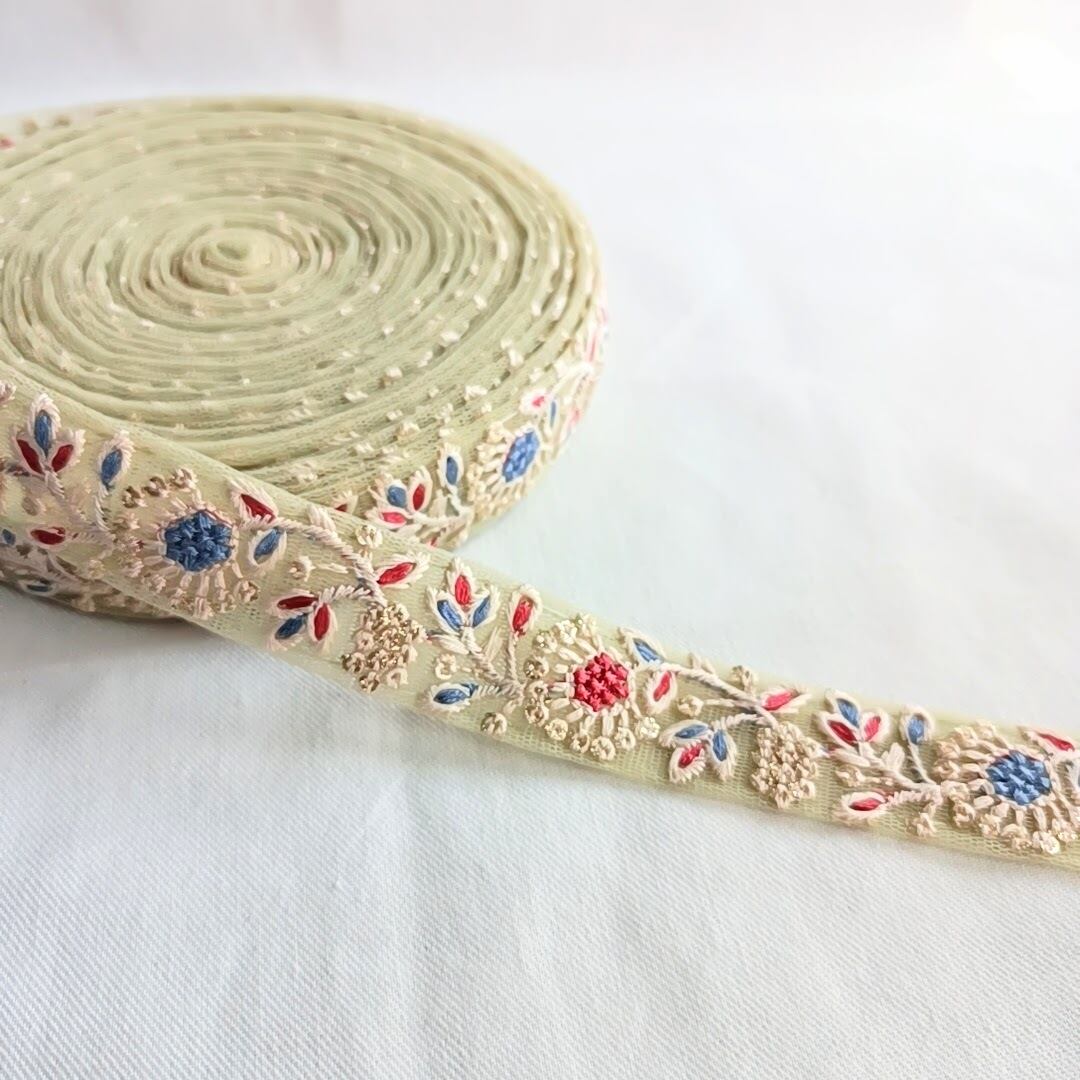【50cm】【25mm幅】細め インド刺繍リボン カラフル フラワー ハンドメイド 手芸 R044