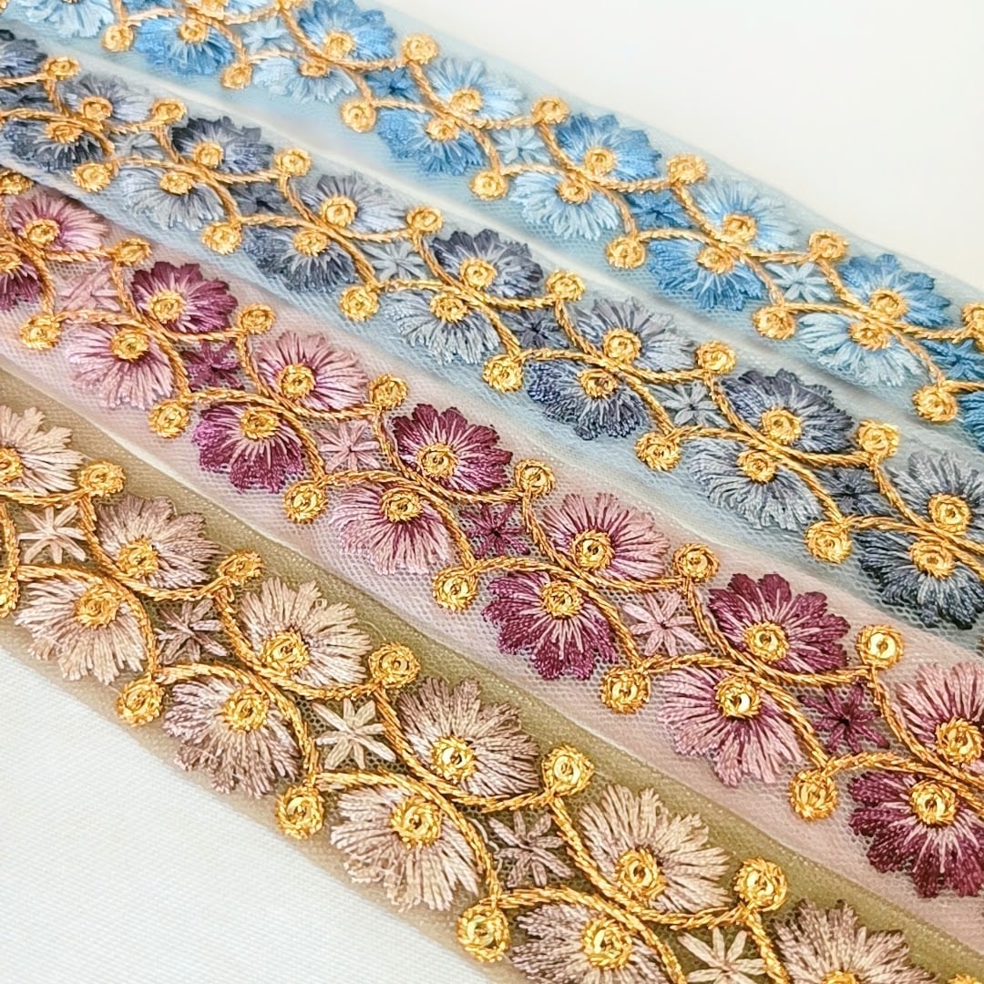 ※インド刺繍リボンは同じ種類のリボンでも多少の幅のバラツキがございます。