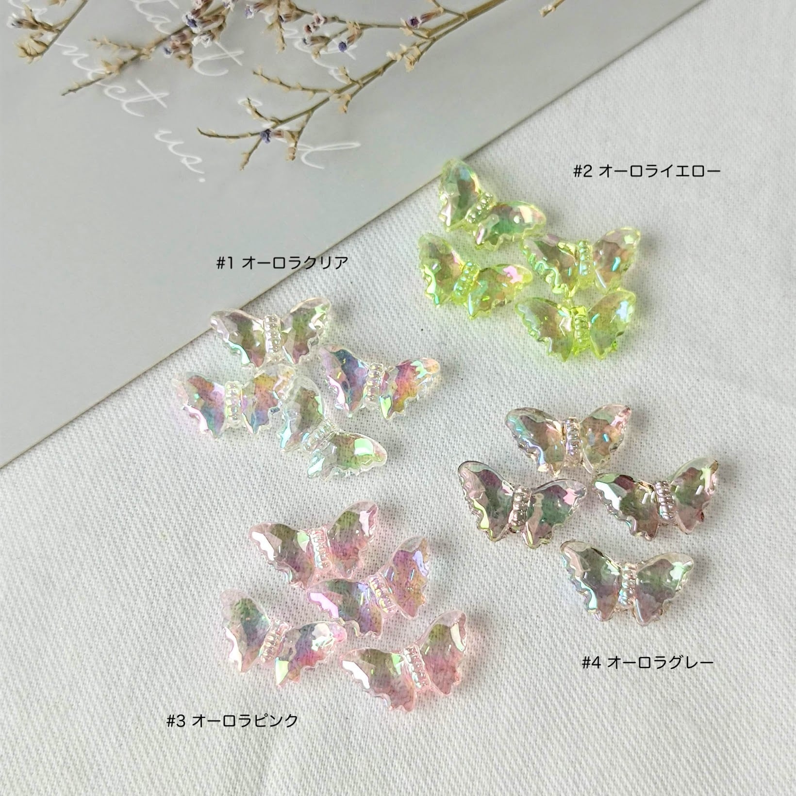【6個】人魚姫 バタフライ 貫通穴 小ぶり オーロラ ビーズ 蝶々 アクセサリーパーツ デコパーツ
