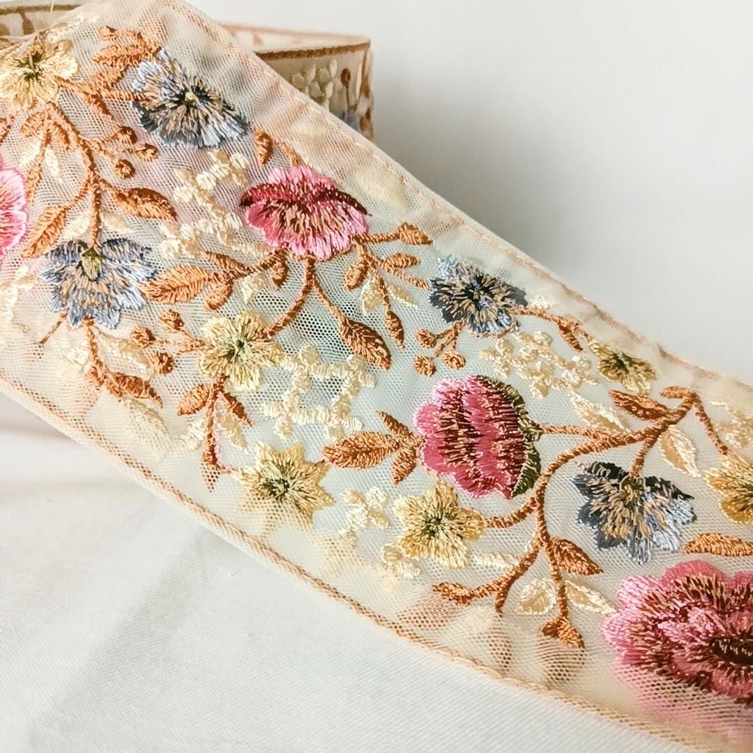 【30cm】【95mm幅】ワイドタイプ インド刺繍リボン フラワー ハンドメイド 手芸 R052