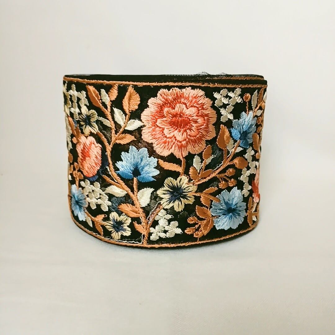 ※インド刺繍リボンは歪み、糸の未処理、継ぎ目、刺繍ミス等多々あります。予めご承知下さいませ。