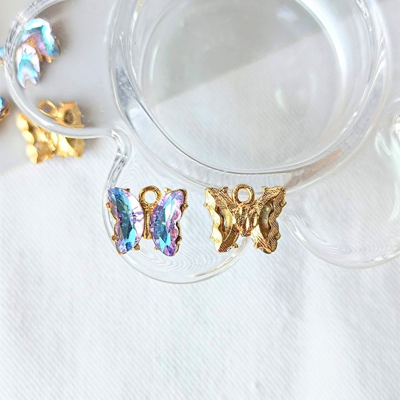 【6個】ミニサイズ クリスタル バタフライチャーム メタルチャーム オーロラ アクセサリーパーツ MP121