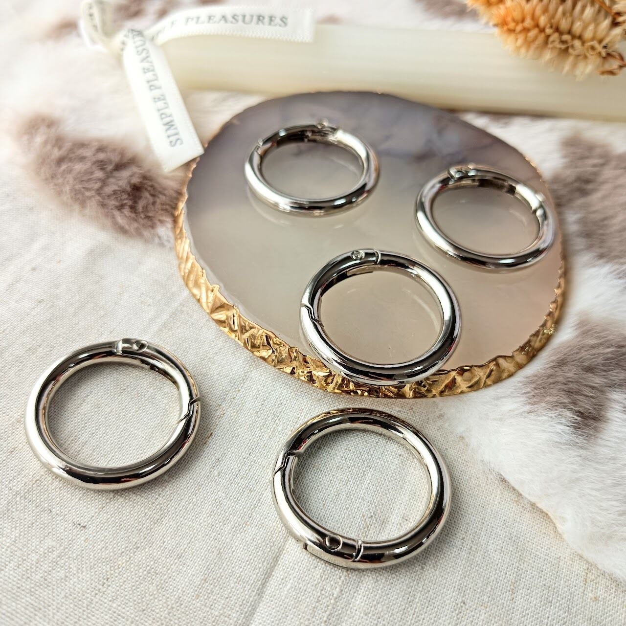 【6個】【30mm】丸型 カラビナ キーリング Oリング バッグリング キーホルダー金具 スプリング ハンドメイド MP114