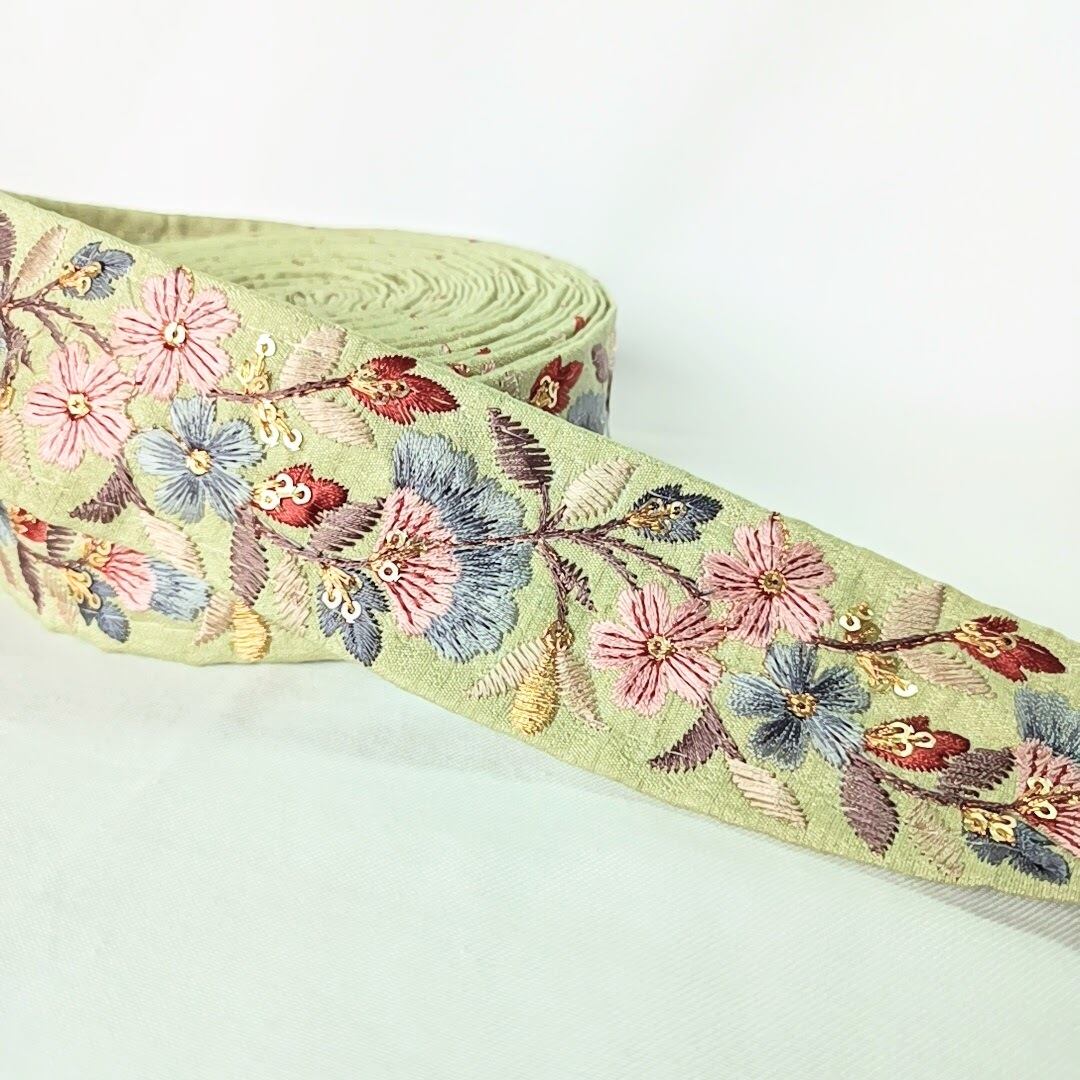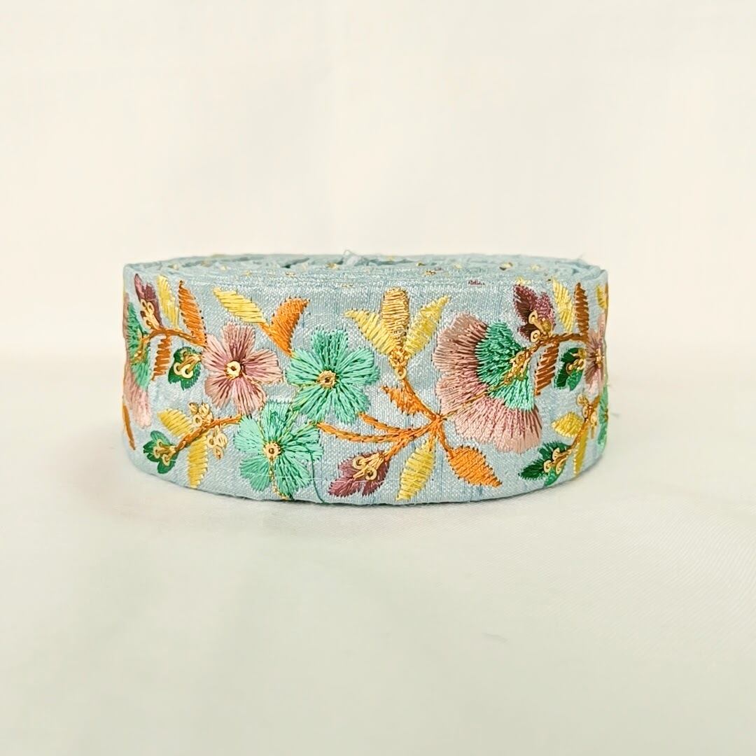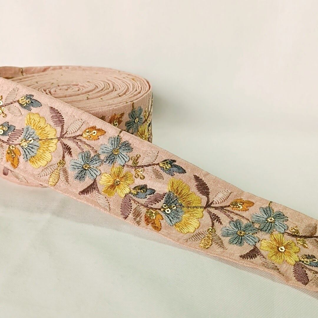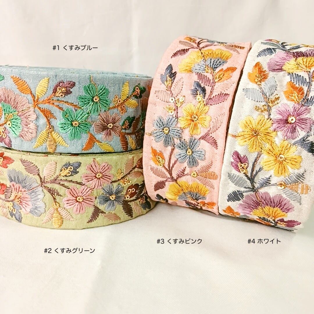 【50cm】【50mm幅】インド刺繍リボン くすみカラー レトロ フラワーモチーフ ハンドメイド 手芸 R060