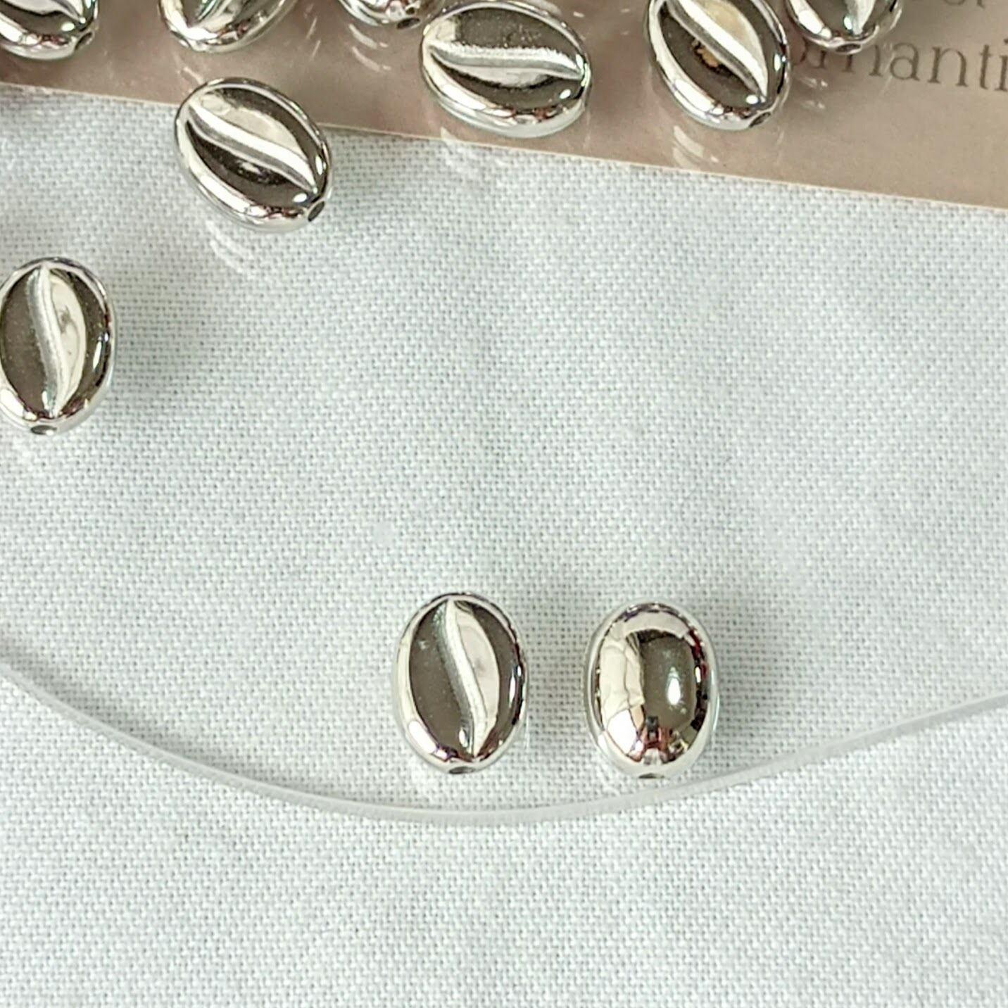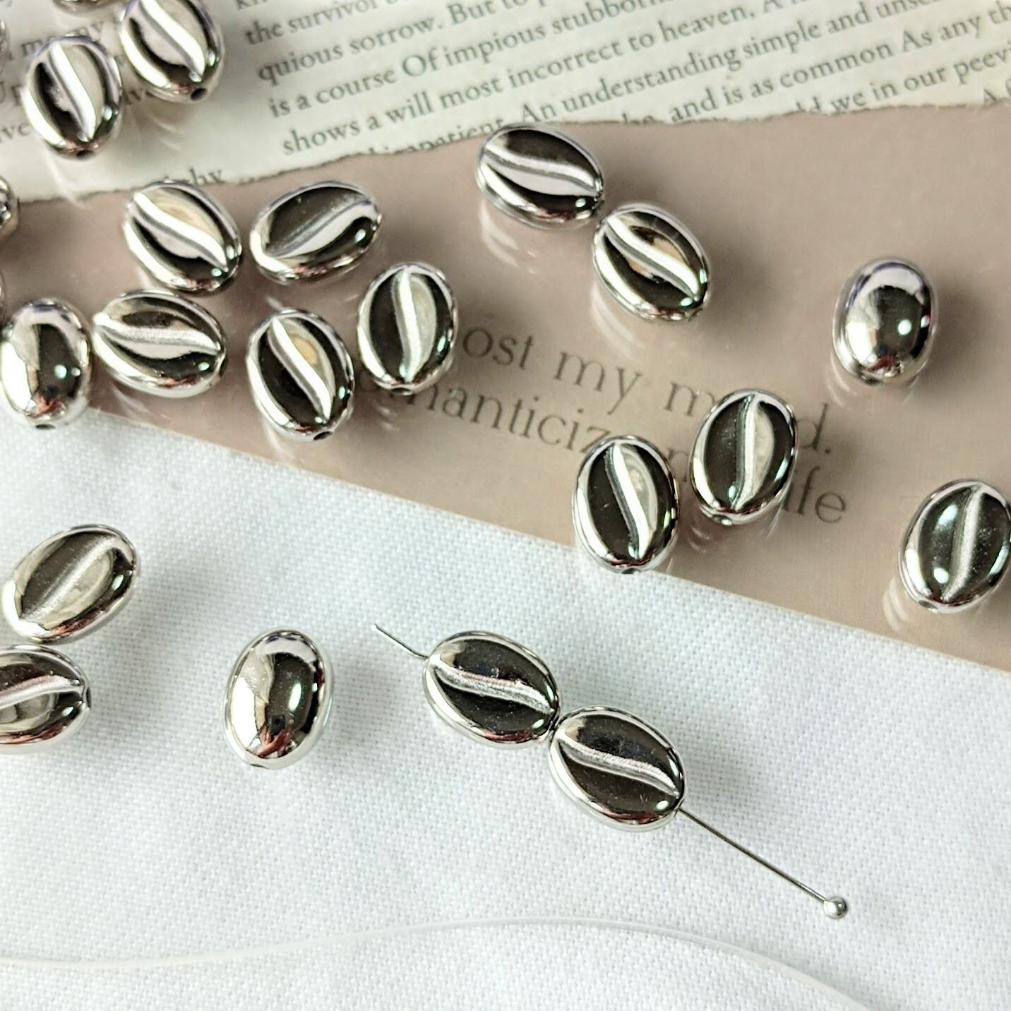 【30個】【シルバー】コーヒー豆ビーズ メタリック 貫通穴 アクリル アクセサリーパーツ ハンドメイド
