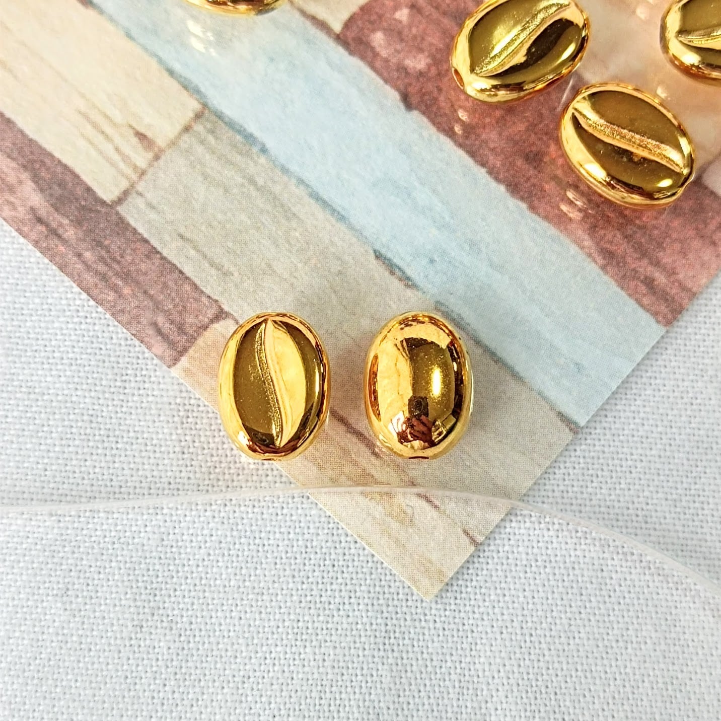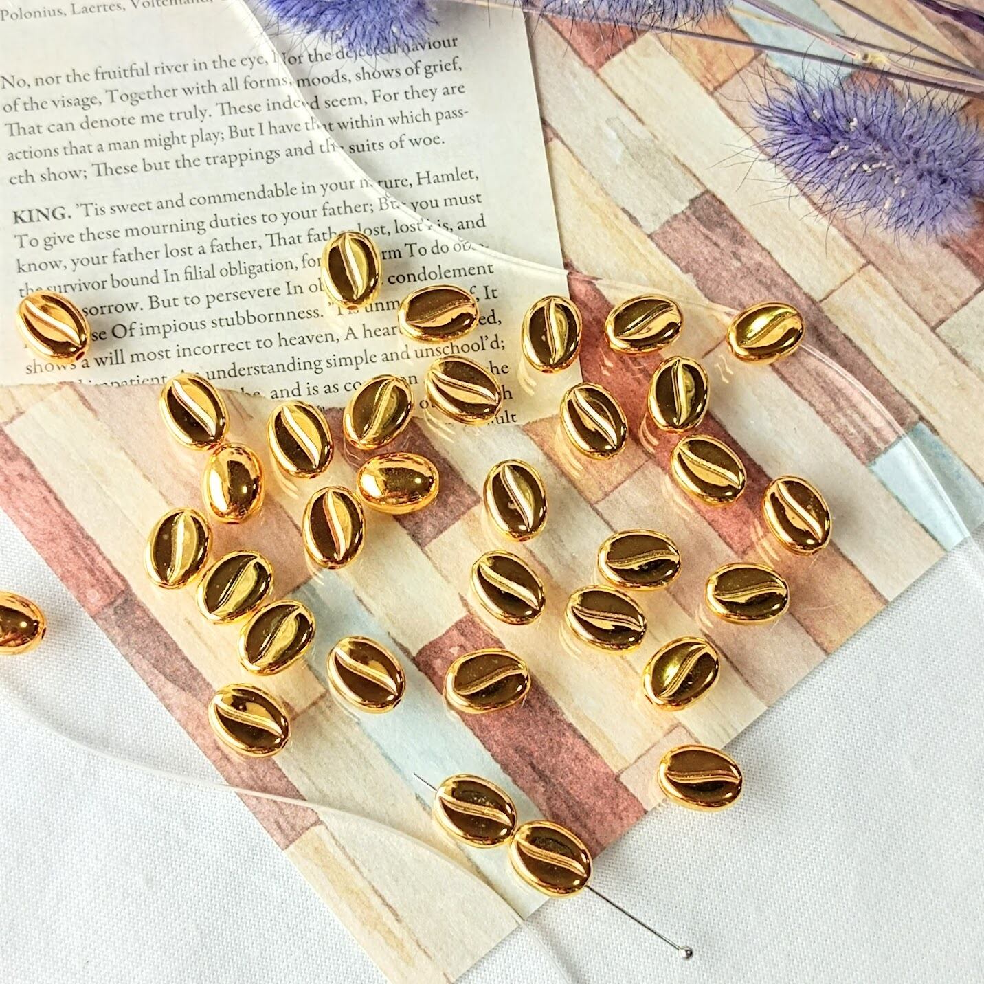 【30個】【イエローゴールド】コーヒー豆ビーズ メタリック 貫通穴 アクリル アクセサリーパーツ ハンドメイド