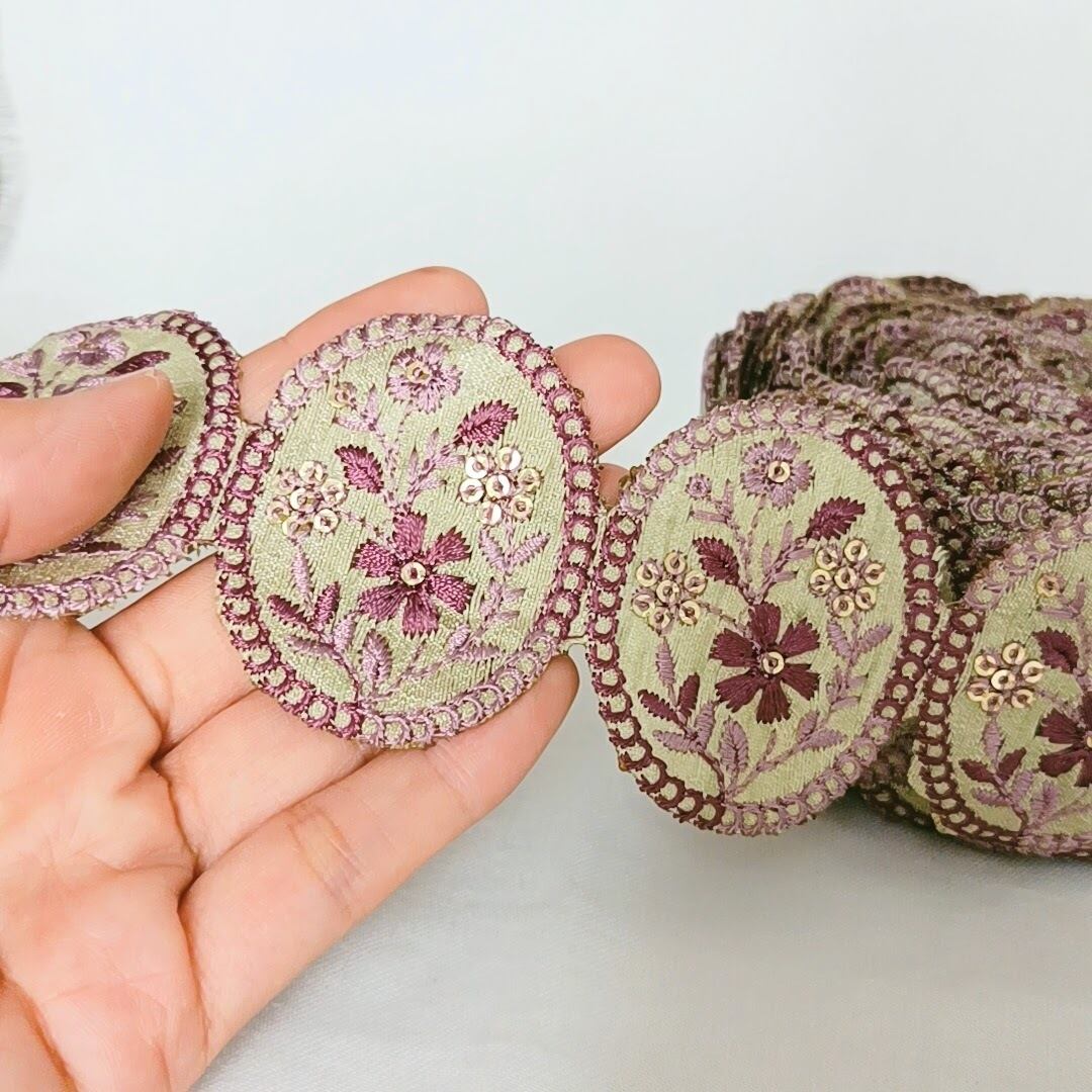 【50cm】【55mm幅】【R047】インド刺繍リボン フラワー 花柄 卵型 オーバル 手芸 ハンドメイド アクセサリーパーツ DIY