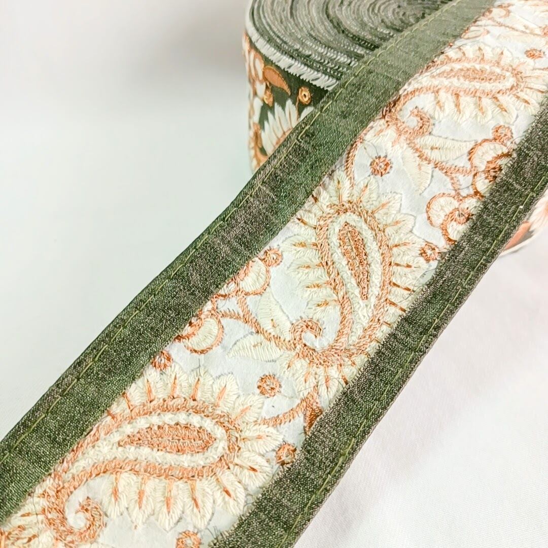 【50cm】【62mm幅】インド刺繍リボン くすみカラー レトロ 太め 手芸 R063