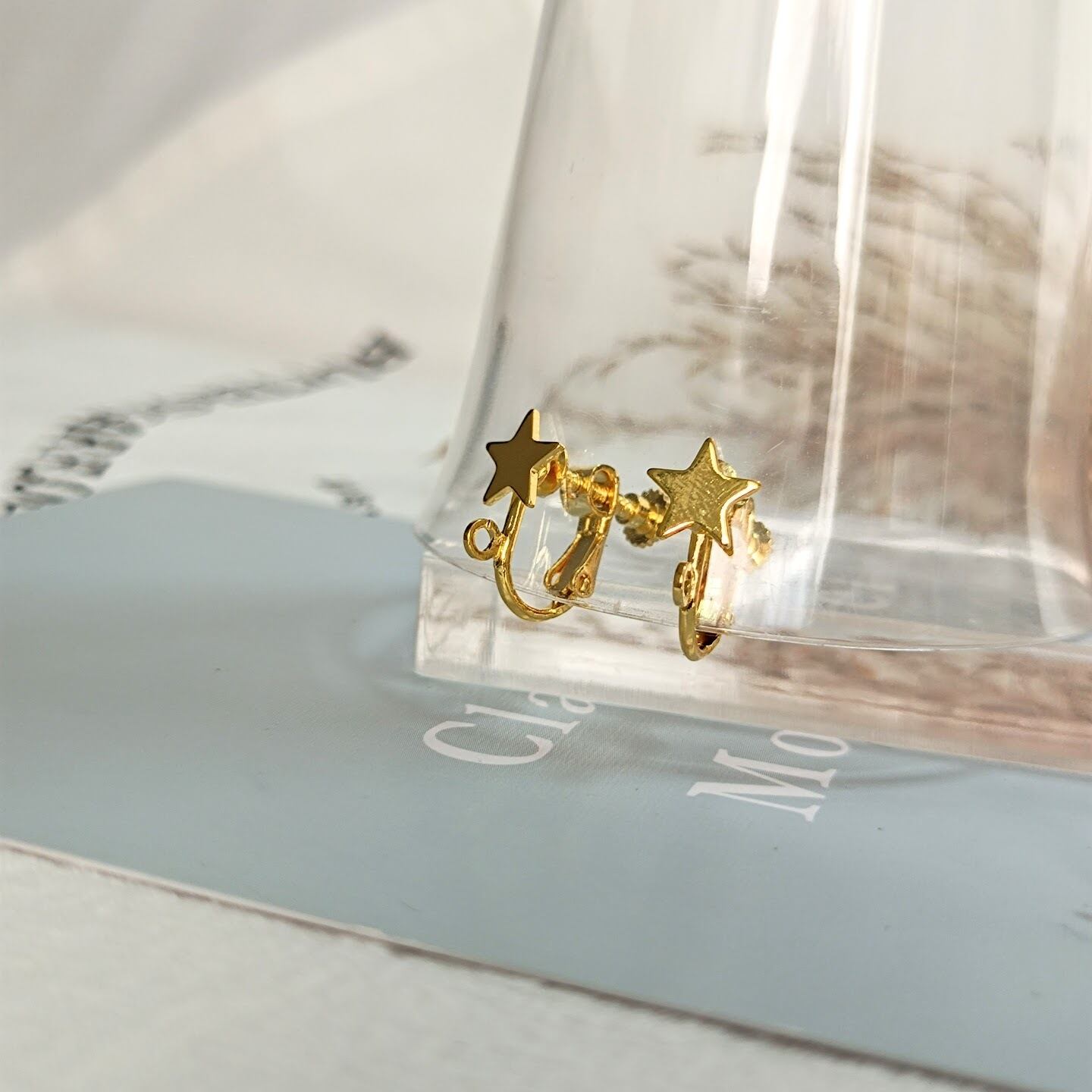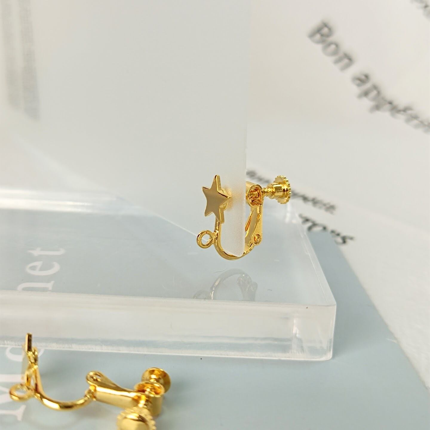 【4個】本金メッキ スター 星形 カン付き イヤリング金具 ナジバネ バネ式 基礎金具 アクセサリーパーツ ハンドメイド MP145