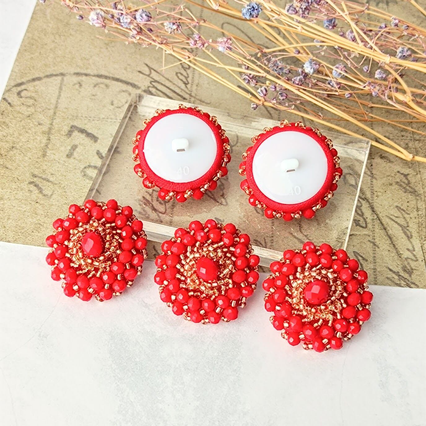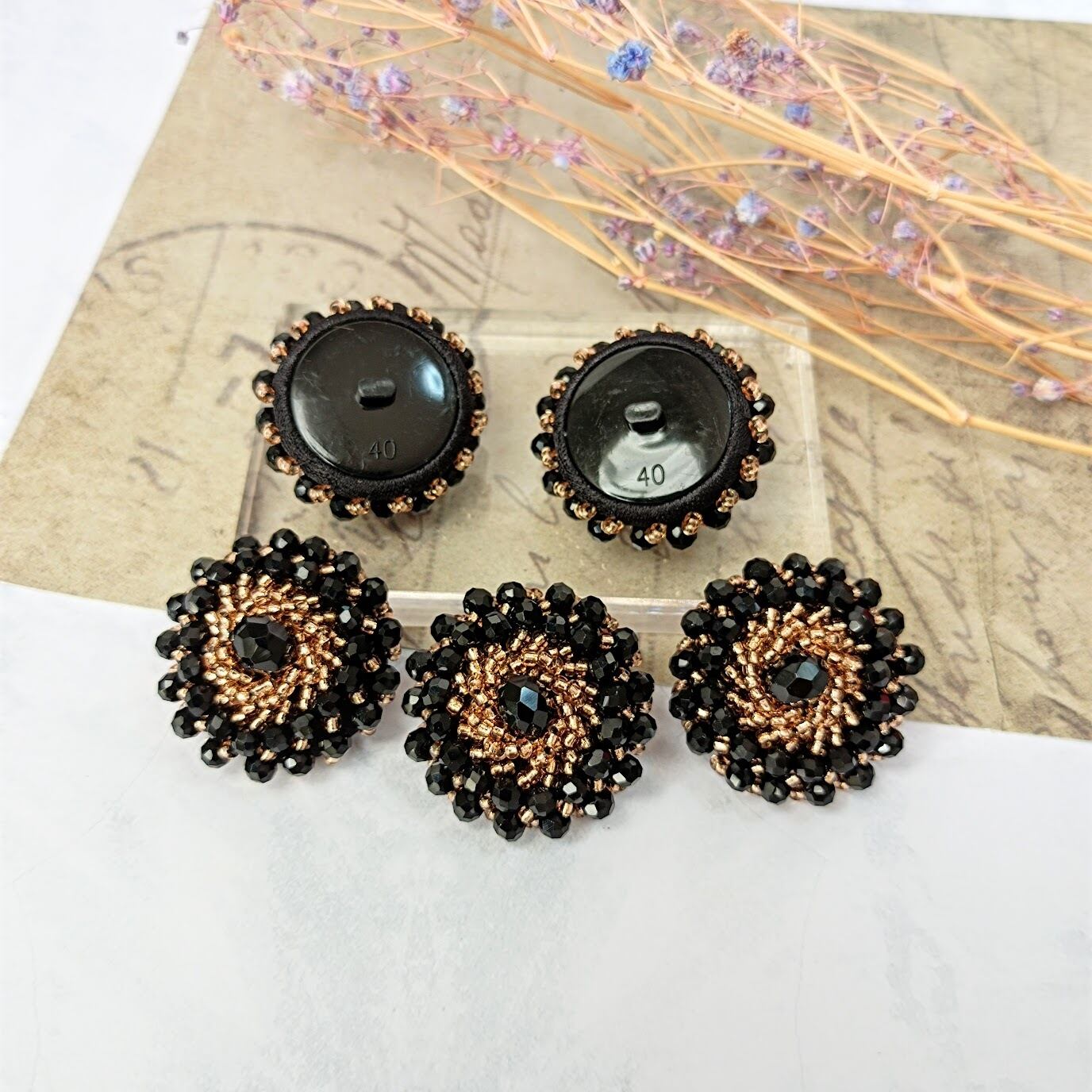【2個】ビーズ刺繍 ボタン ゴージャス アクリルビーズ アクリル デザインボタン