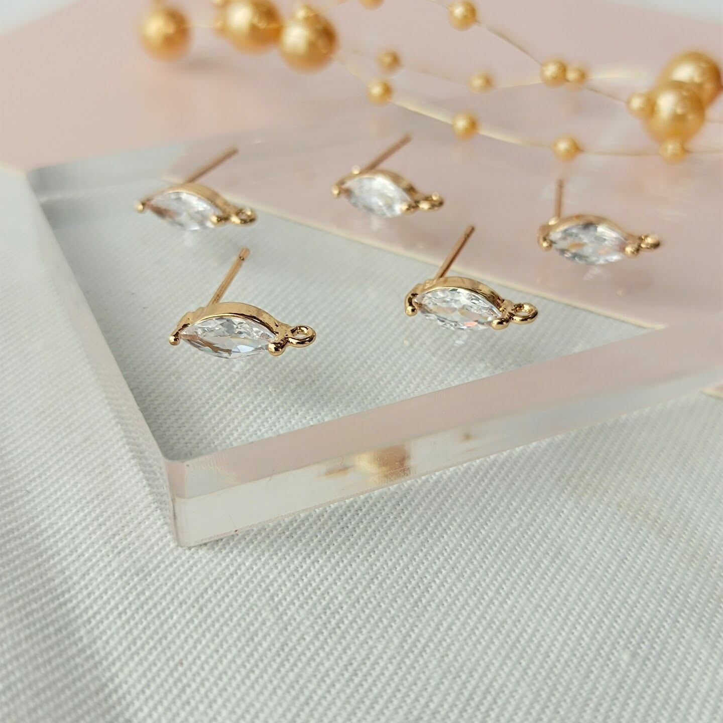 【2個】ジルコニア付き デザインピアス ピアスパーツ 楕円形 カン付き 大人かわい MP151