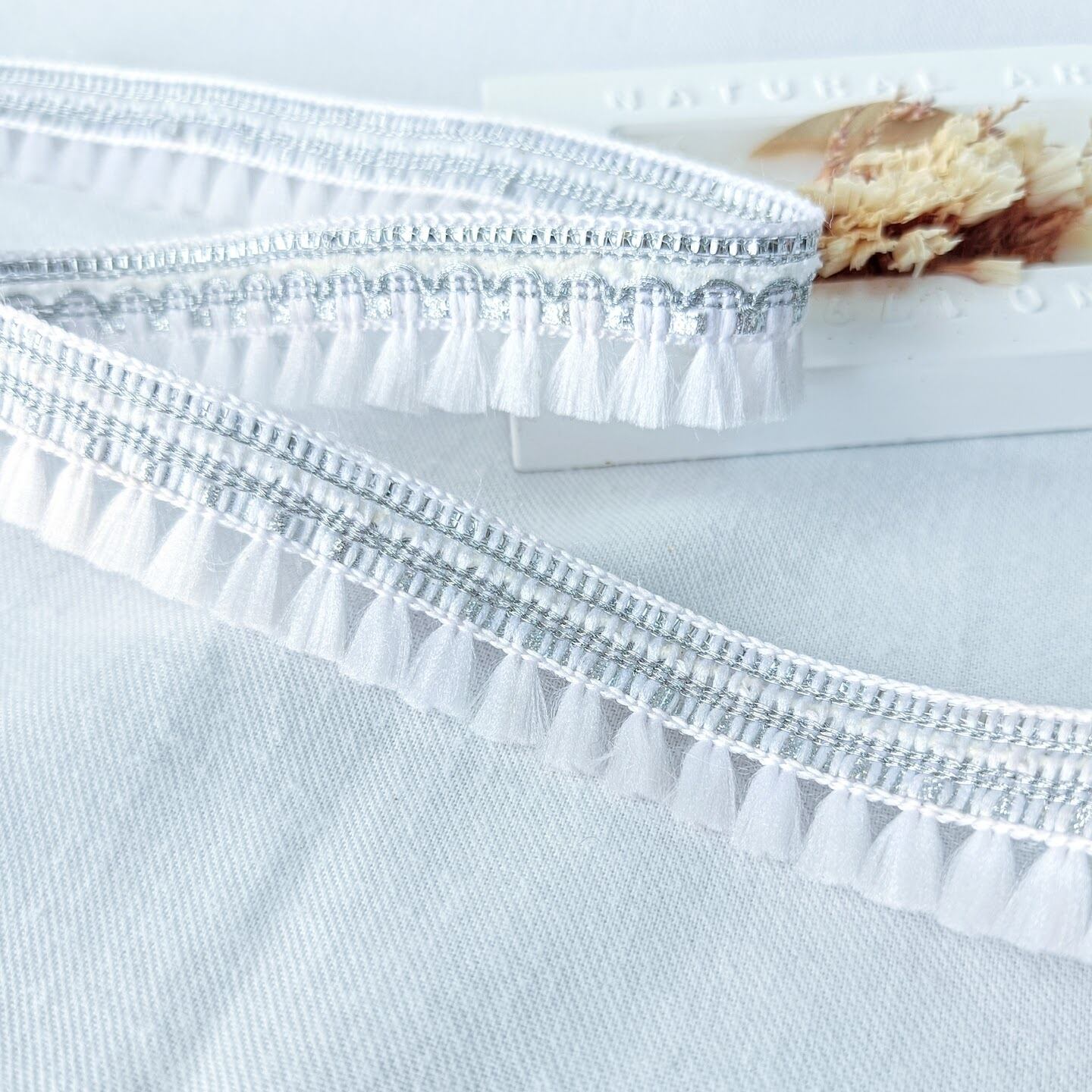 銀糸のフリンジリボンです。
