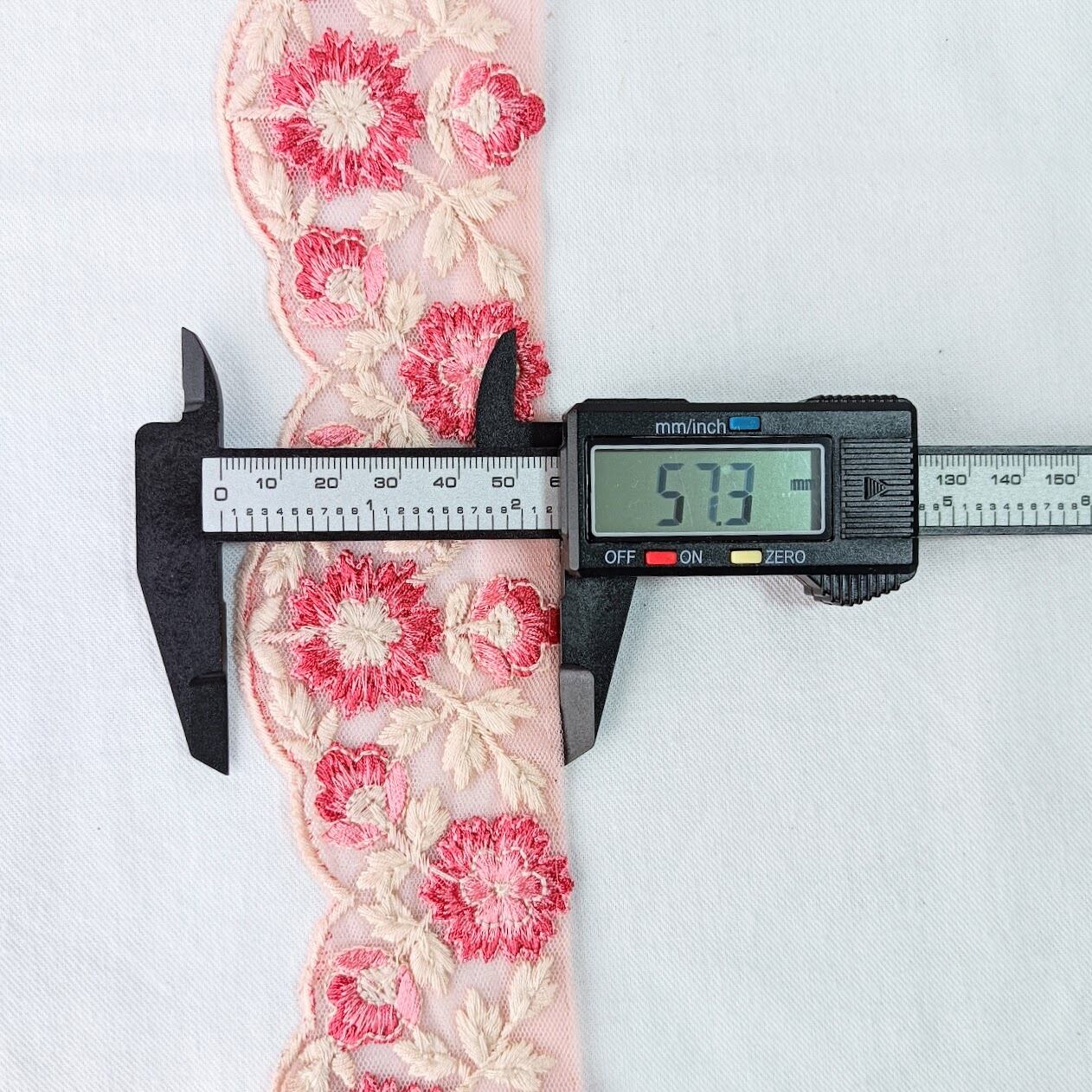 【50cm】【55mm幅】インド刺繍リボン なみなみ フリンジ くすみカラー レトロ フラワー 太め 手芸 R094