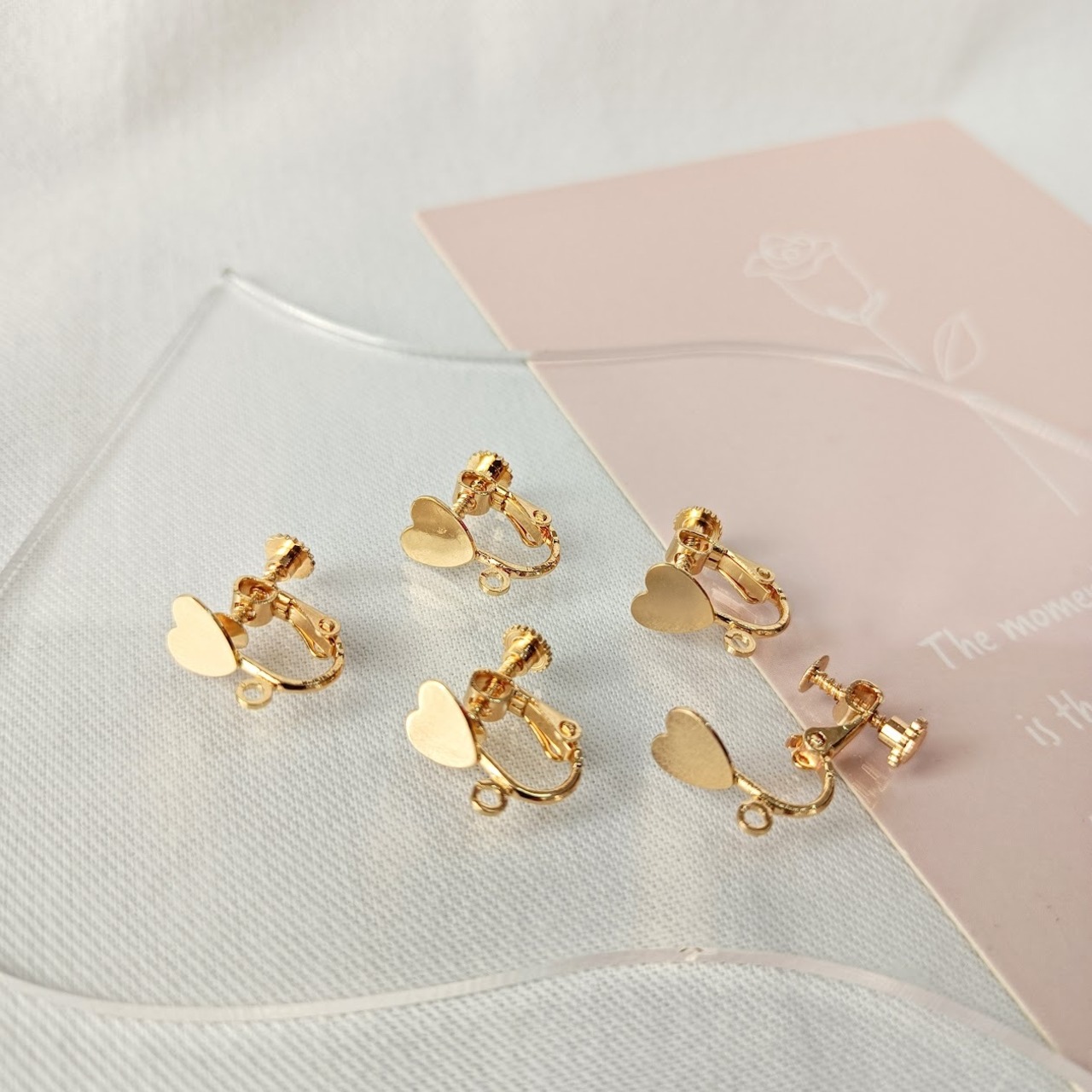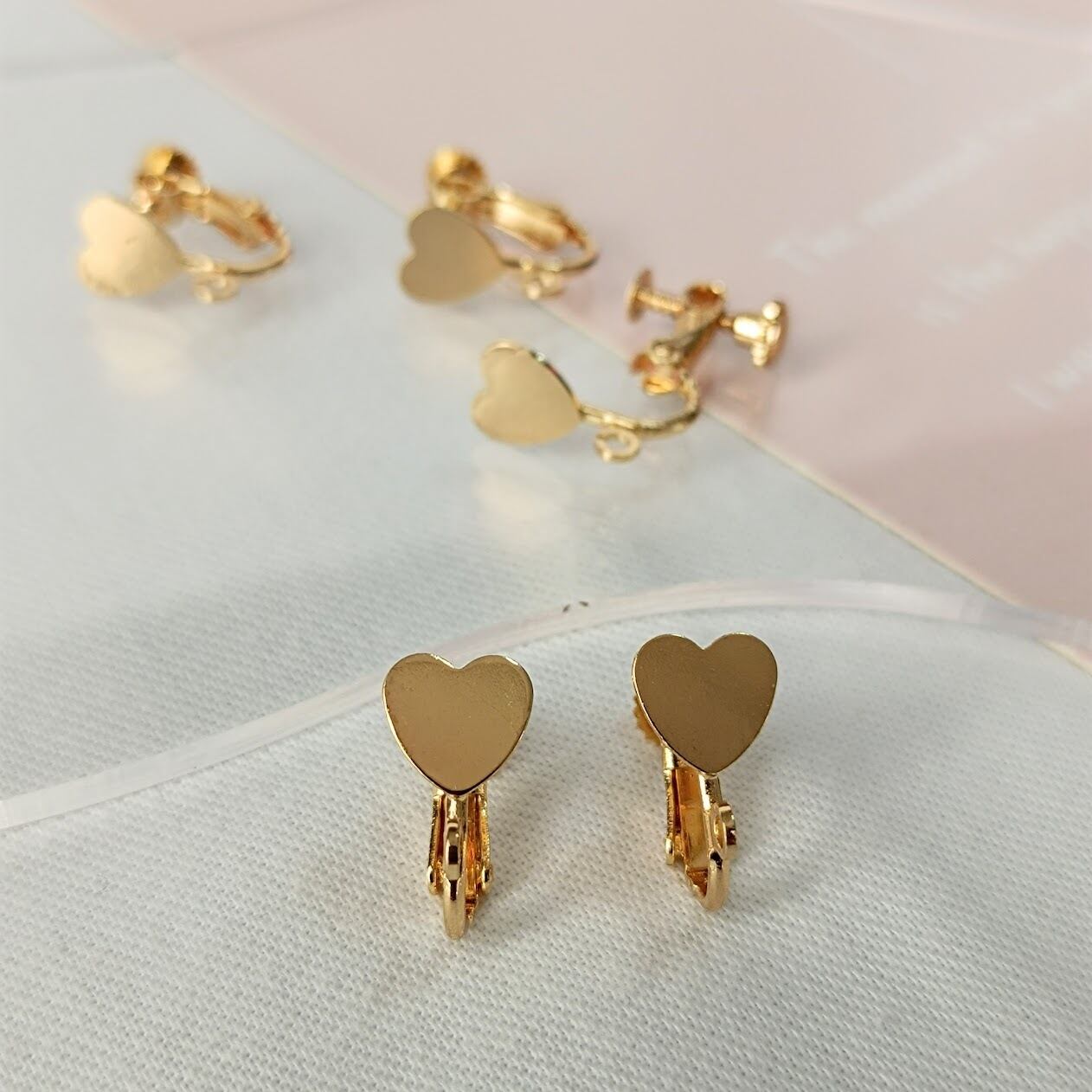 【4個】本金メッキ ハート カン付き イヤリング金具 ナジバネ バネ式 基礎金具 アクセサリーパーツ ハンドメイド MP159