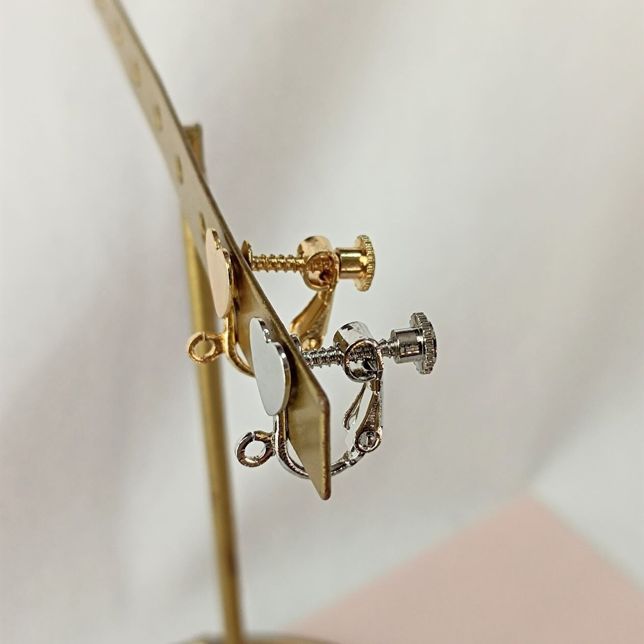 便利なカン付きタイプのネジ式イヤリングパーツです。