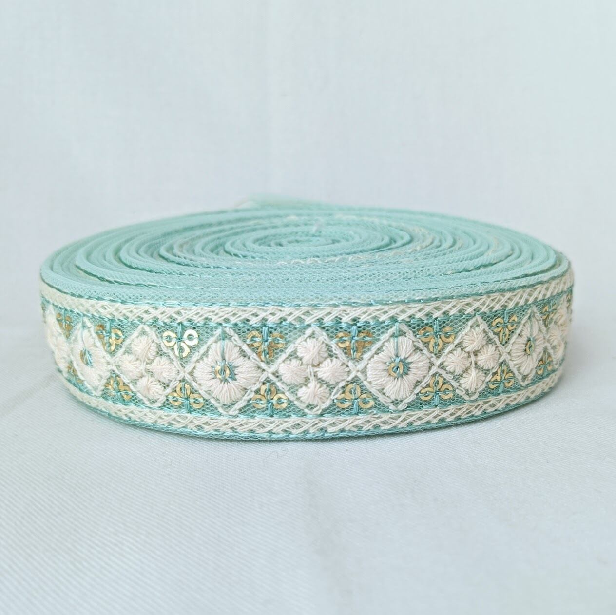 ※インド刺繍リボンは歪み、糸の未処理、継ぎ目、刺繍ミス等多々あります。予めご承知下さいませ。