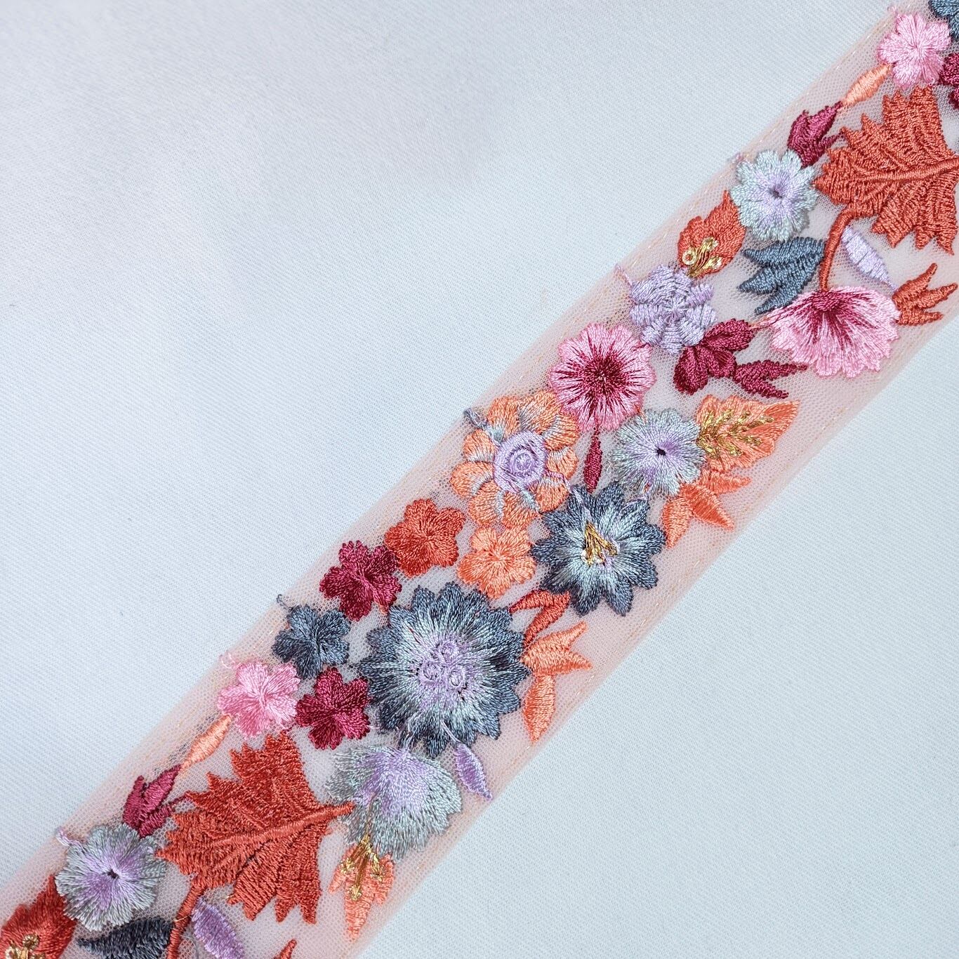 ※インド刺繍リボンは歪み、糸の未処理、継ぎ目、刺繍ミス等多々あります。予めご承知下さいませ。